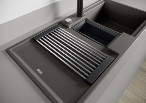 Эта гранитная мойка продумана до мелочей: основная чаша оборудована современной отводной арматурой InFino и элегантным и гигиеничным переливом C-overflow.
