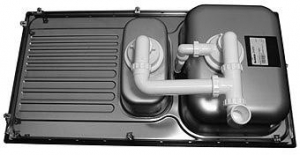 Кухонная мойка из матовой нержавеющей стали. Глубина дополнительной чаши 13 см.