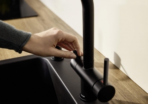 • Удобный комбинированный смеситель с рычагом холодной и горячей воды справа, и рычагом для фильтрованной воды слева