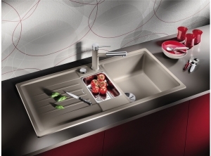 Универсальный смеситель. Одно рычажный кран подключение к водопроводным сетям. Сочетание материалов хром/SILGRANIT