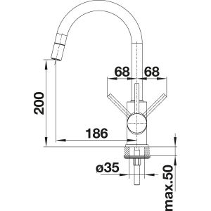 Высокий излив позволяет легко наполнять большие кастрюли и вазы