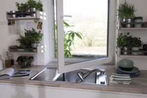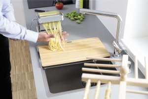 Смеситель Blanco Linus-F - синтез эргономики и функциональности. Складной съемный однорычажный смеситель для кухни без выдвижной лейки для установки перед окном. Для удобства в открывании и закрывании окна вы можете просто приподнять и целиком убрать смеситель, положив на мойку.