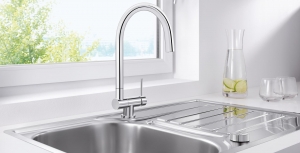 Кухонный смеситель Blanco Coressa-F оснащен удобным складным механизмом. Всего одним движением его можно сложить и за считанные секунды и опустить в чашу мойки. Это позволяет быстро и широко открывать окно, так как носик полностью погружается в чашу. В сложенном состоянии конструкция смесителя имеет высоту всего 6,5 см. Звуковой щелчок на верхнем и нижнем упорах является верным признаком того, что клапан снова находится в полностью функциональном положении.